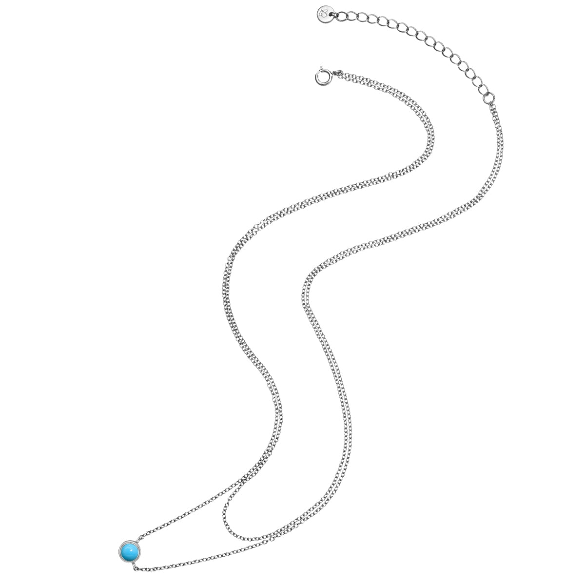 Magst du die kraftvolle Ausstrahlung von Türkis? Dann wird dir die Edelstein-Kette gefallen! Der beliebte Schutzstein steht seit der Antike für Lebensfreude, Vitalität und gute Laune und wird hier von von einer schmalen Fassung eingerahmt. Zusätzliches Highlight ist das zweireihige Design, das sofort alle Blicke auf dein Dekolleté lenkt. Fassung und Ankerkette sind aus hochglanzpoliertem Sterlingsilber gefertigt und mit einer Rhodiumschicht vor dem Anlaufen geschützt. Die Kette punktet auch beim Tragekomfort: Mit Hilfe eines kleinen Verlängerungsstücks lässt sich die Länge schnell und einfach anpassen.