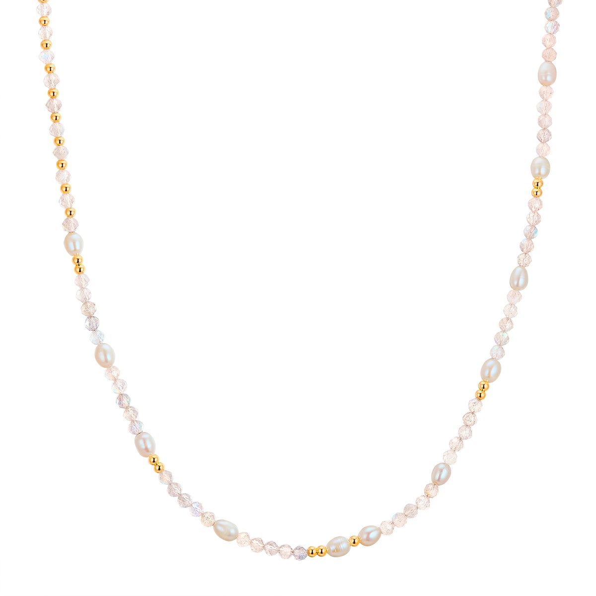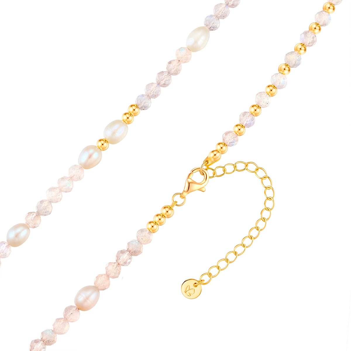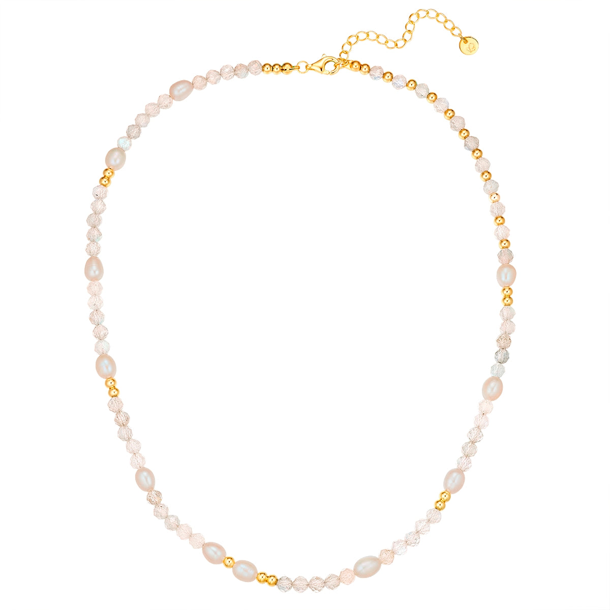 Edelstein-Kette mit Labradorit/Süßwasser-Zuchtperle