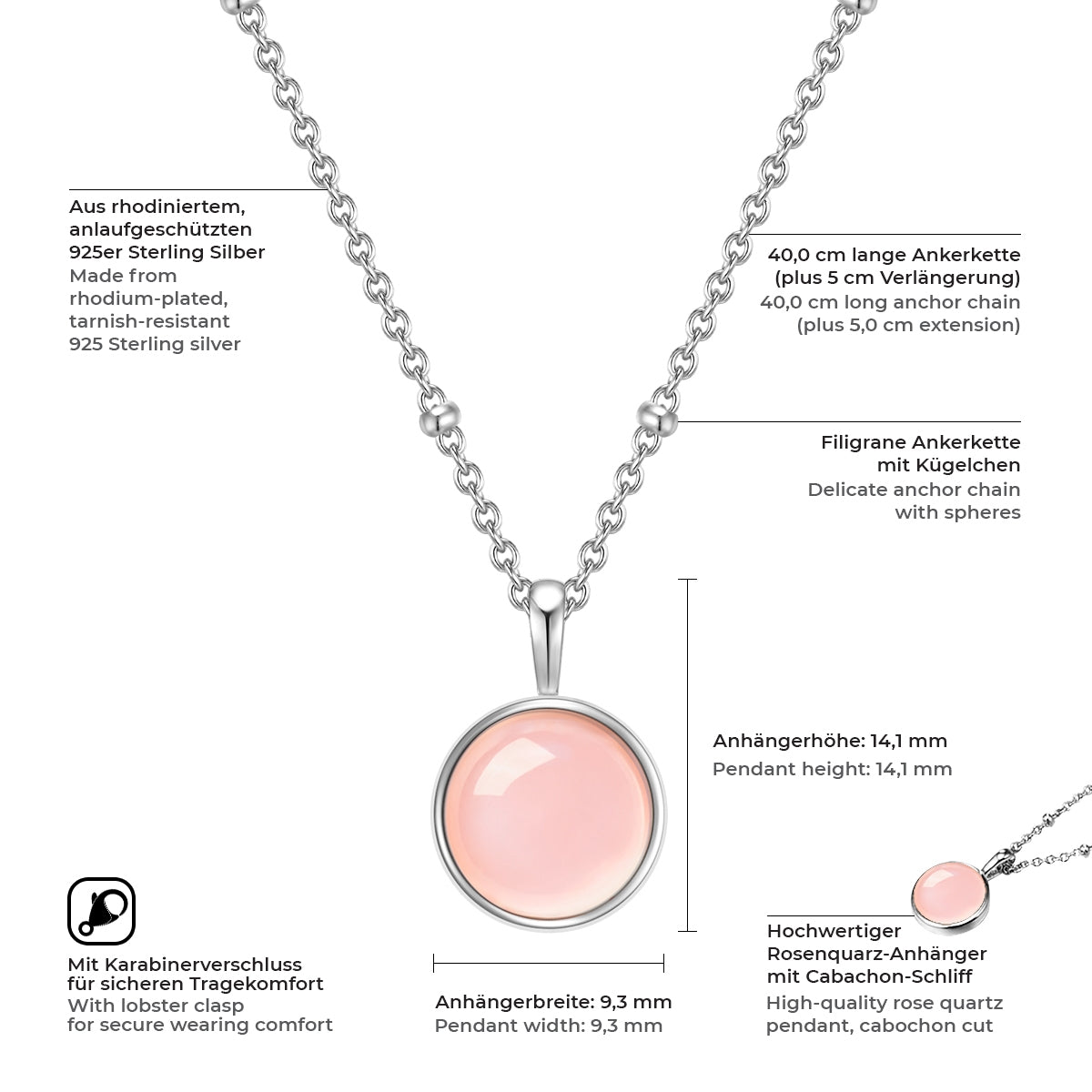 Halskette Rosenquarz silber