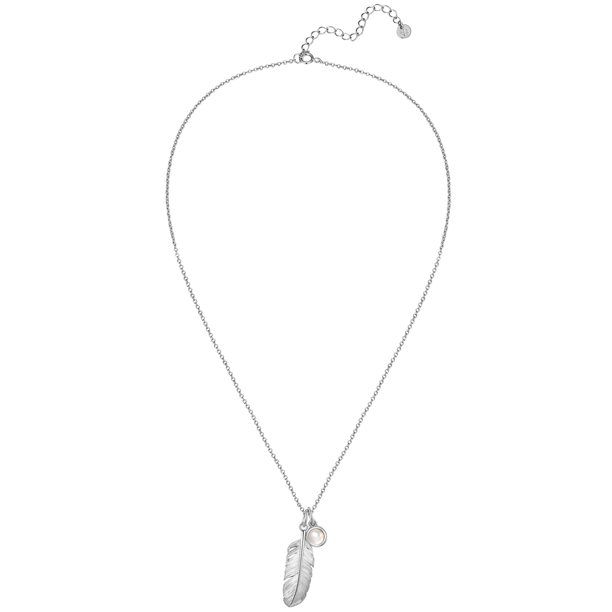 Kette mit Anhänger FEDER silber mit Mondstein (synth.)