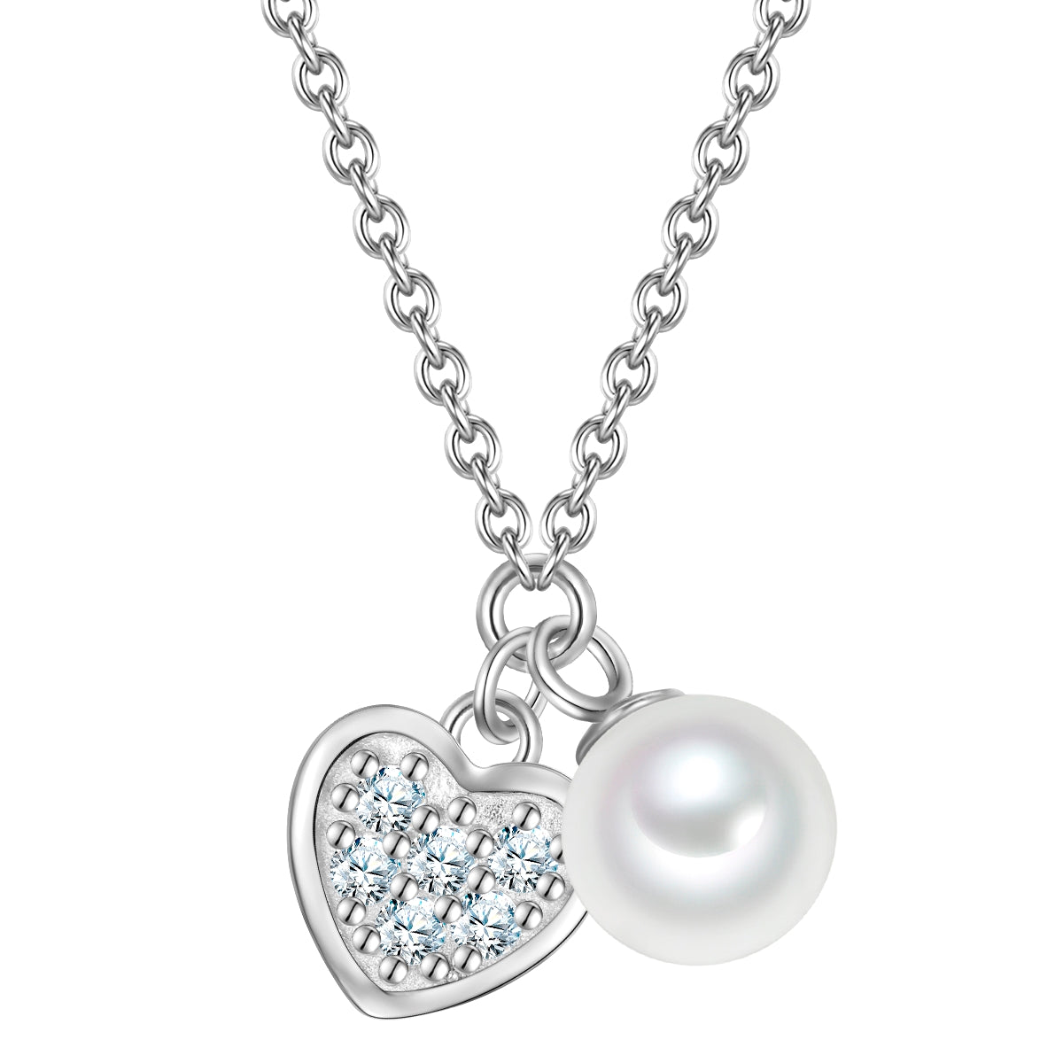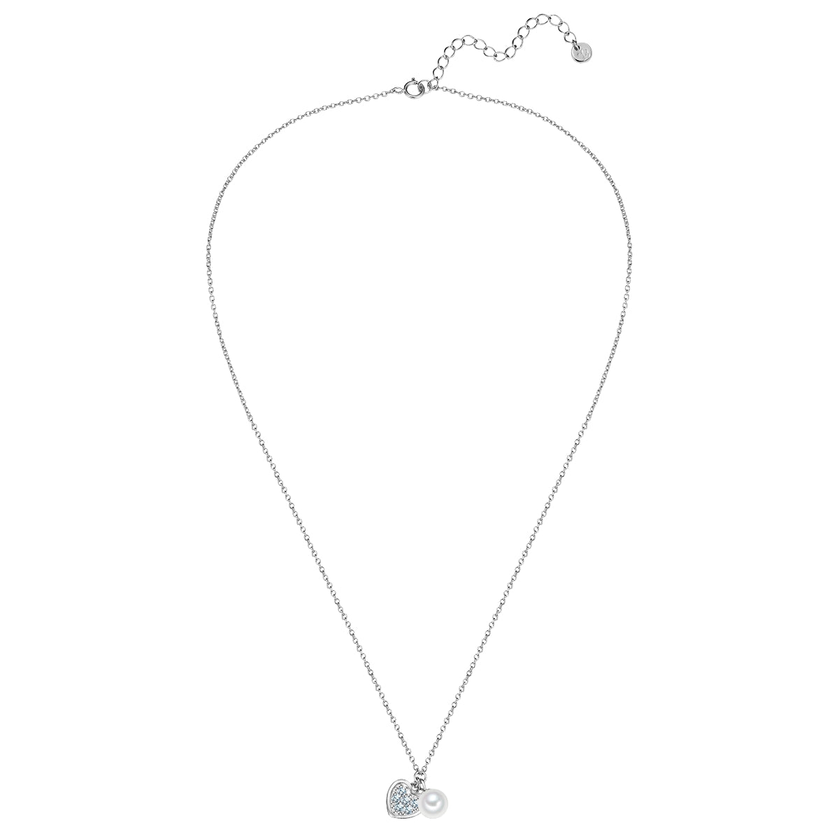 Kette mit Anhänger HERZ mit Zirkonia/Süßwasser-Zuchtperle silber