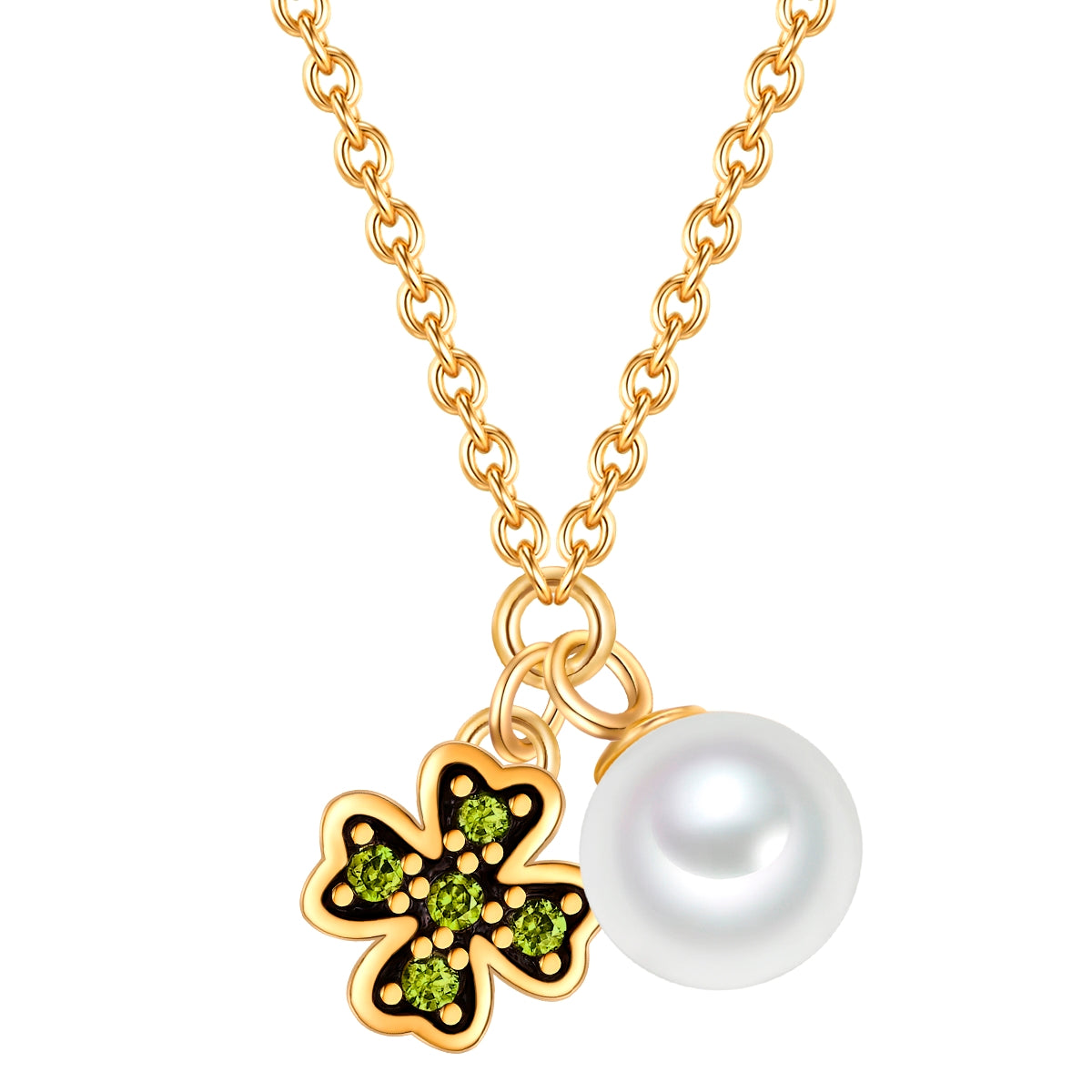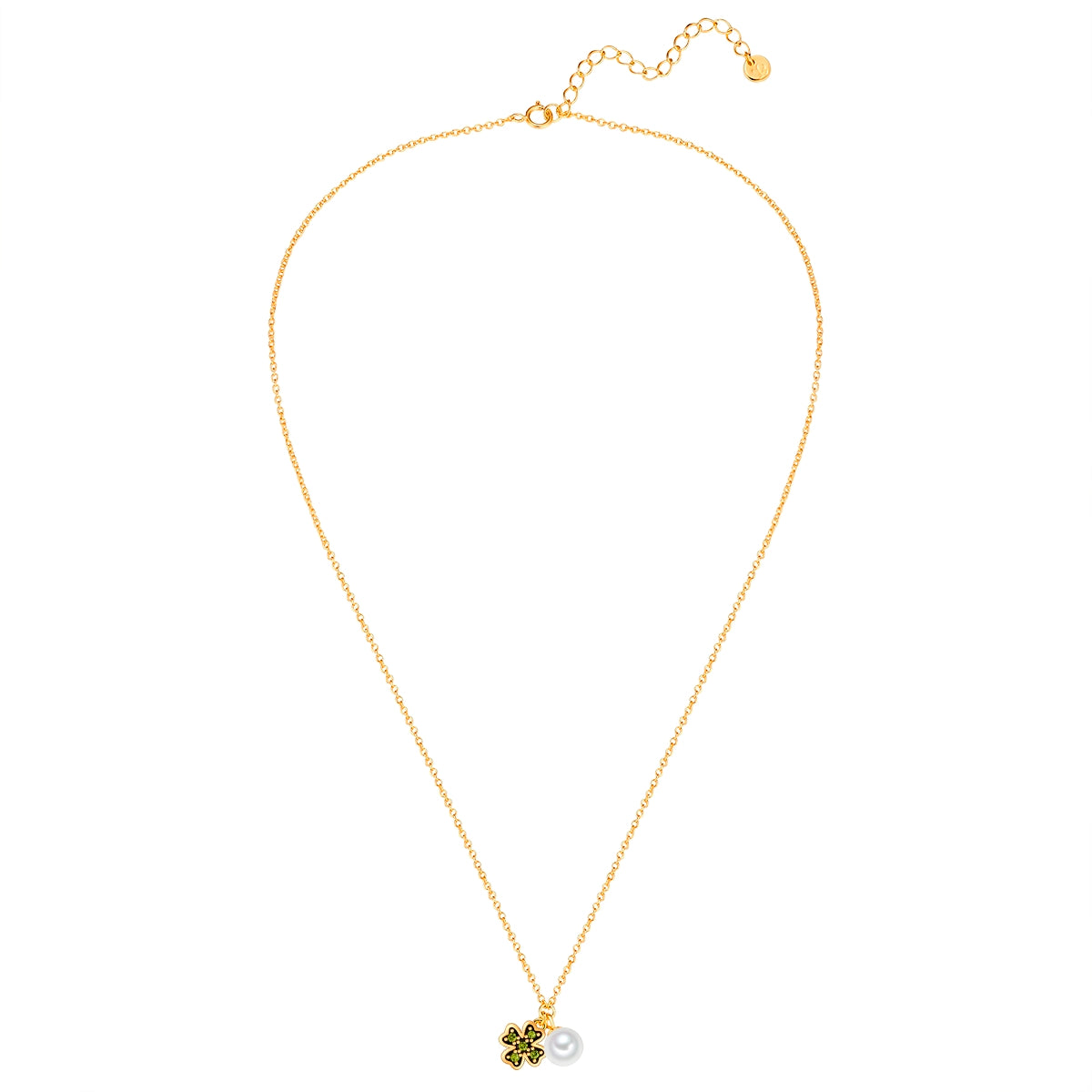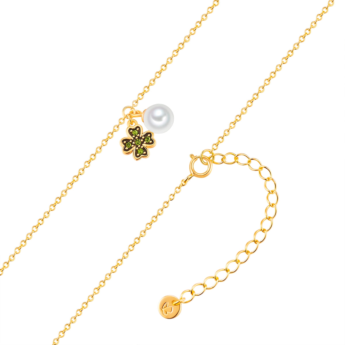 Kette mit Anhänger KLEEBLATT mit Zirkonia/Süßwasser-Zuchtperle gelbgold