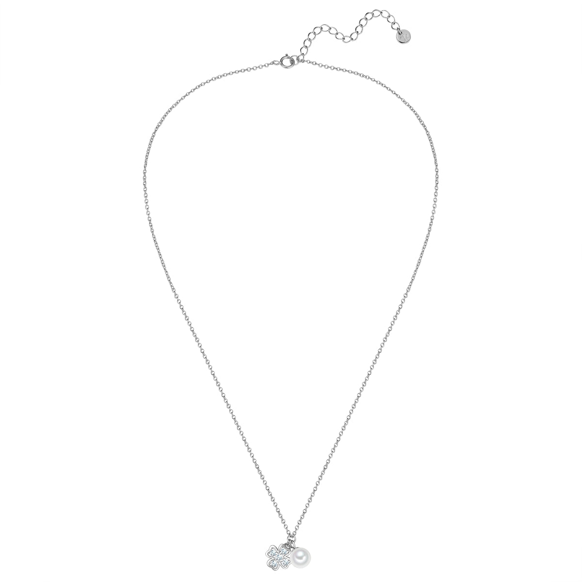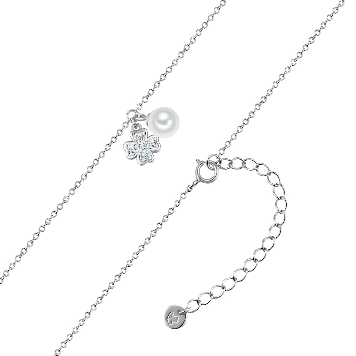 Kette mit Anhänger KLEEBLATT mit Zirkonia/Süßwasser-Zuchtperle silber