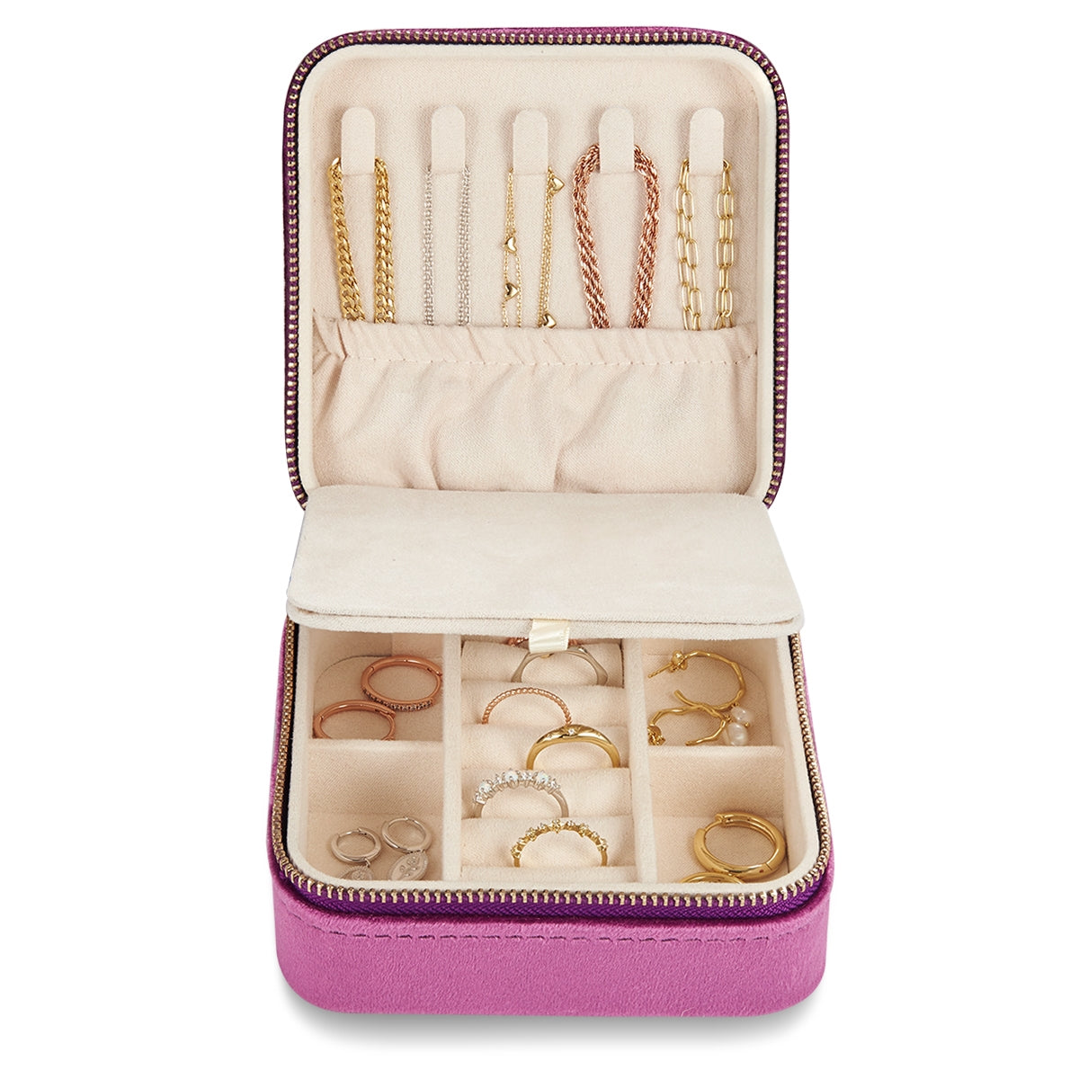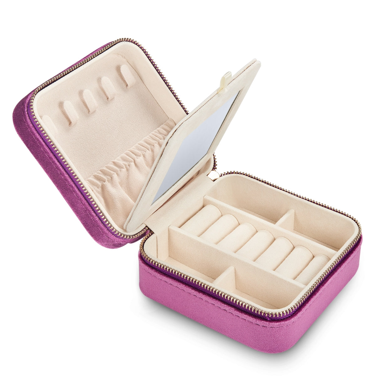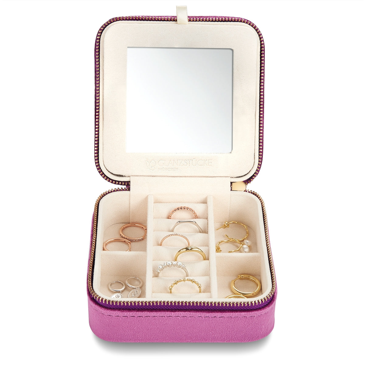 Schmucketui für Reisen Samt mit Spiegel Medium flieder