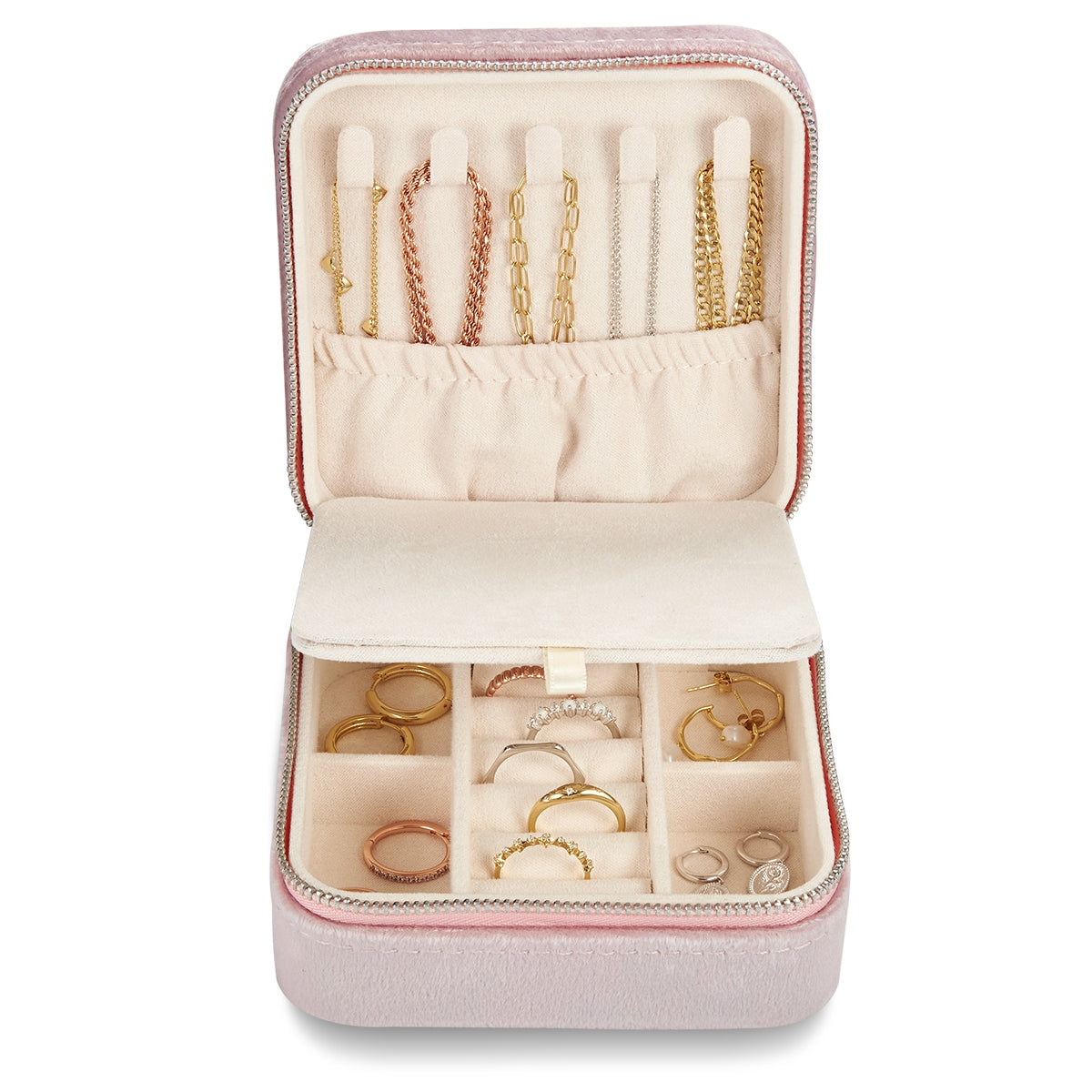 Schmucketui für Reisen Samt mit Spiegel Medium rosa