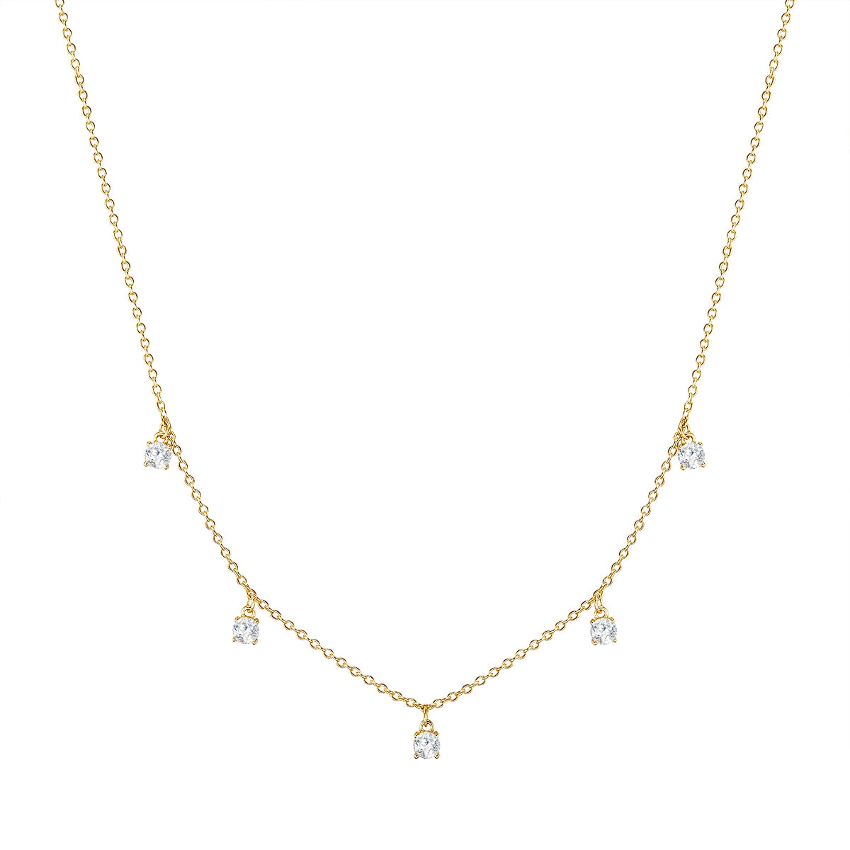 Silberkette gold mit 5 Zirkonia-Steinchen