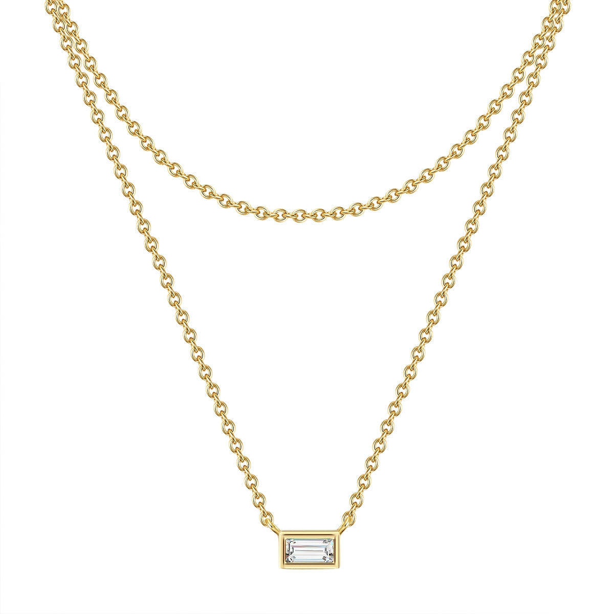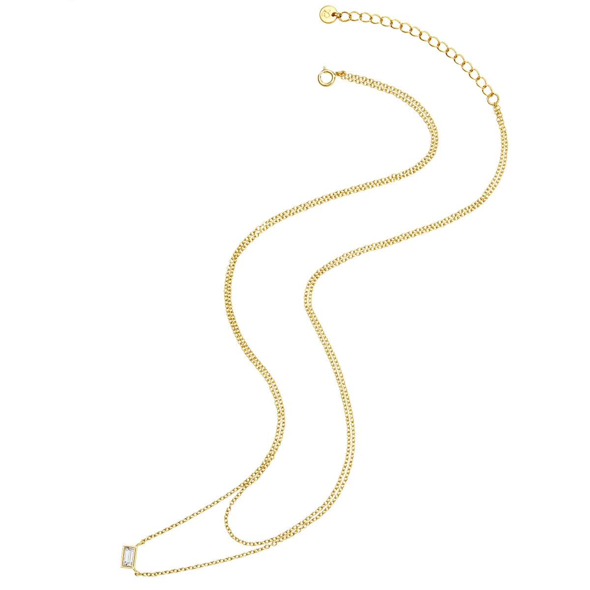 Als Fashionista gefallen dir geometrische Schmuckdesigns, gleichzeitig liebst du aber auch das Glitzern von Kristallen? Dann ist diese bezaubernde zweireihige Kette dein nächstes Lieblingsstück! An einer filigranen Ankerkette schmiegt sich der Anhänger aus einem barrenförmigen Zirkoniakristall in Baguetteschliff in dein Dekollete und verwandelt mit präzise geschliffenen Facetten das Licht in ein atemberaubendes Funkeln. Sowohl die Kette als auch die Kristallfassung bestehen aus 925er Sterlingsilber und sind mit warmem Gelbgold veredelt. Hohen Tragekomfort bietet das Verlängerungsstück für eine einfache Längenanpassung.