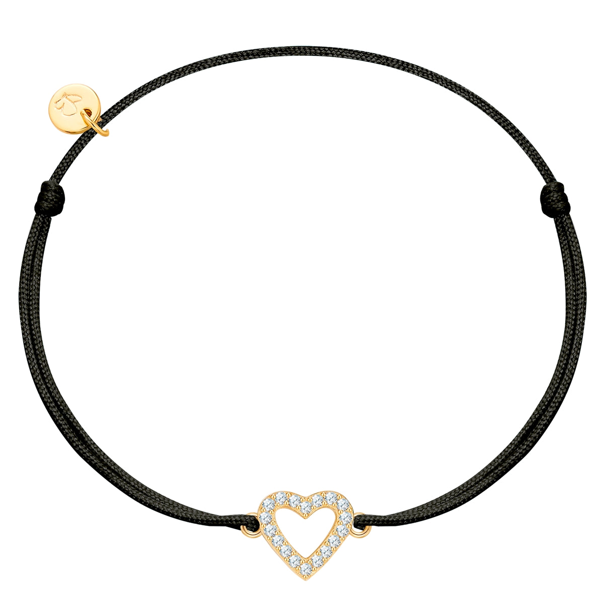Textil-Armband schwarz Herz gold mit Zirkonia