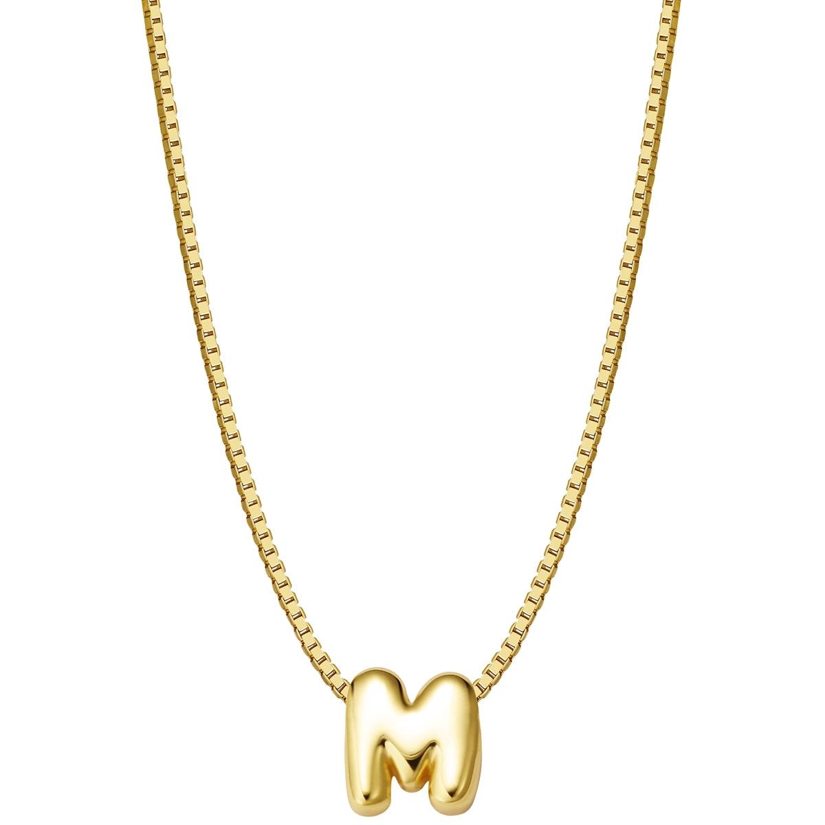 Entdecke die Schönheit der Individualität mit der Bubble Letters Kollektion. Diese zauberhafte Halskette mit dem Buchstaben M ist das perfekte Accessoire, um deiner Persönlichkeit Ausdruck zu verleihen. Hergestellt aus feinstem 925er Sterling Silber und mit 14 Karat Gelbgold veredelt, bringt sie einen Hauch von Luxus in deinen Alltag. Die zarte Kastenkette schmiegt sich sanft an deinen Hals und der Buchstabenanhänger zieht alle Blicke auf sich. Ob als liebevolles Geschenk für einen besonderen Menschen oder als persönliches Schmuckstück, diese Kette ist eine stilvolle Möglichkeit, deine Geschichte zu erzählen. Der praktische Federringverschluss sorgt für einfaches Anlegen und die Verlängerung bietet Flexibilität. Perfekt für besondere Anlässe wie Geburtstage!