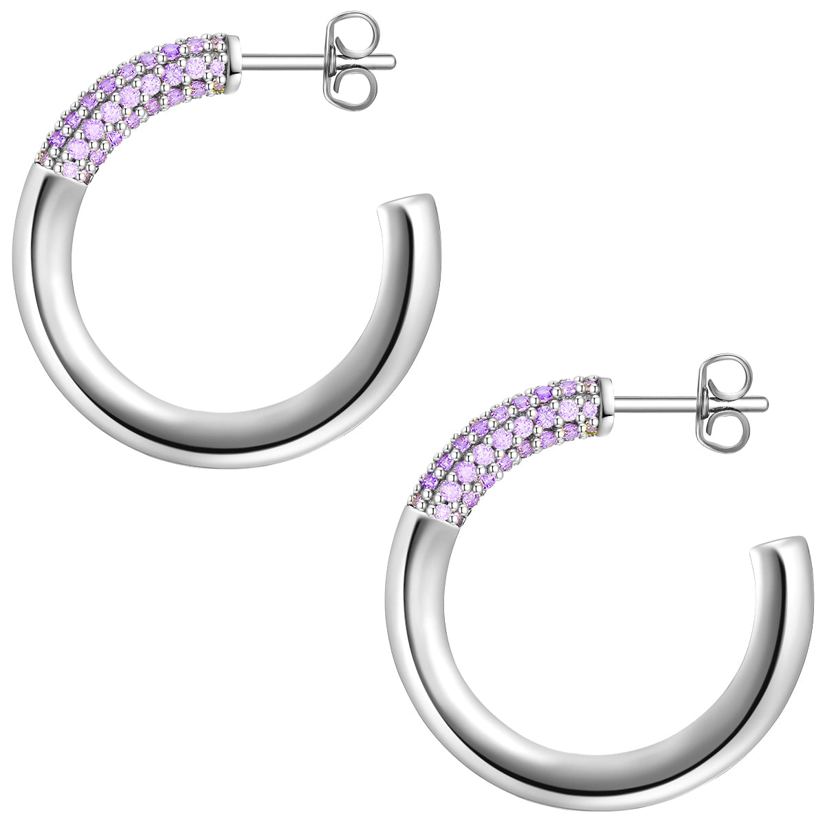 Wenn du gerne Creolen mit Glamour und einem modernen Touch trägst, dann wurden unsere Ohrringe für dich entworfen! Mit einem Teilbesatz aus farbigen Zirkoniakristallen in Pavéfassungen zaubern sie ein freches Glitzern an deine Ohrläppchen. Gefertigt aus 925er Sterlingsilber und mit einer hochwertigen Rhodiumschicht veredelt, erstrahlen sie lange in kühlem Silberglanz und sind zuverlässig gegen Anlaufen geschützt. Ein praktischer Steckverschluss macht das An- und Ablegen unkompliziert. Die Creolen sind ein Eyecatcher und eine Bereicherung für jede Schmuckschatulle.