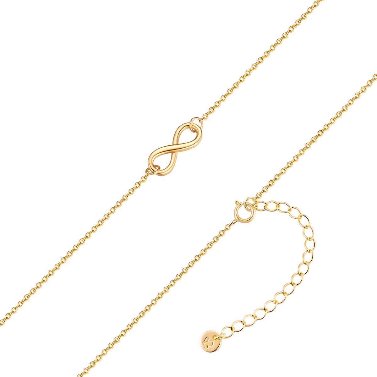 Lass dich von der zeitlosen Eleganz der Infinity-Halskette verzaubern. Diese exquisite Kette aus 925er Sterling Silber ist gelbvergoldet und ein Symbol für unendliche Verbundenheit. Die zarte Ankerkette schmiegt sich sanft um deinen Hals und ist ein perfektes Accessoire für jeden Anlass. Der Federringverschluss sorgt für sicheren Halt und ermöglicht ein einfaches Anlegen. Mit ihrer Verlängerung passt sich die Kette flexibel an dein Dekolleté an. Diese Halskette ist nicht nur ein stilvolles Schmuckstück, sondern auch ein bedeutungsvolles Geschenk, um einem besonderen Menschen eine Freude zu machen. Trage ein Stück Ewigkeit bei dir und lass dich von der Unendlichkeit inspirieren!