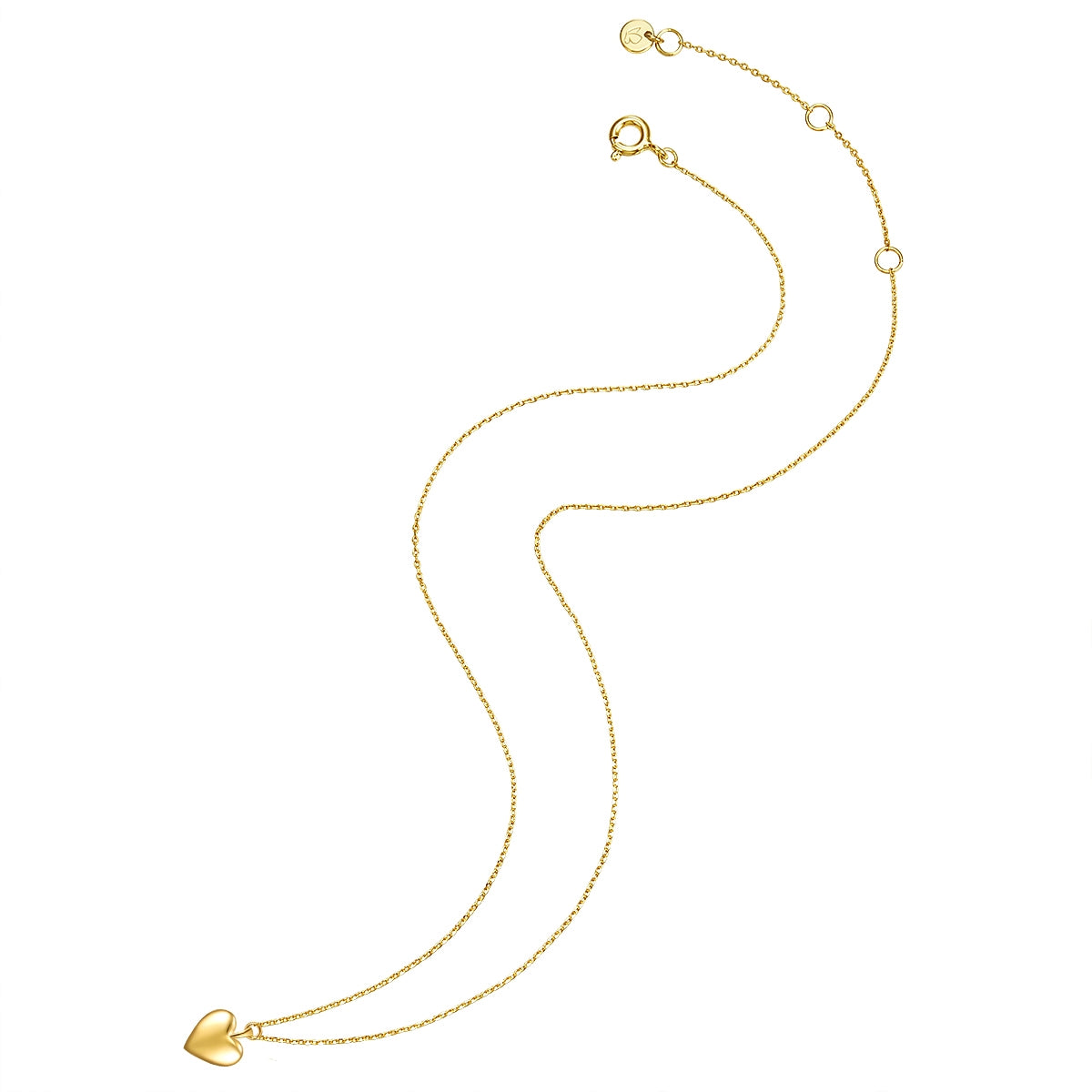 (Nicht nur) für Romantikerinnen: Mit dieser Kette kannst du ein Symbol eurer Liebe immer im Dekolleté tragen. Die zarte Ankerkette fügt sich in das zurückhaltende Designkonzept ein und harmoniert hervorragend mit dem plastischen 3D-Anhänger in Herzform - beides gefertigt aus 925er Sterlingsilber und mit Gelbgold veredelt. Dank eines Verlängerungsstücks mit Federringverschluss kannst du die Kette schnell und einfach in der Länge anpassen. Das edle Accessoire passt zur Jeans ebenso wie zur festlichen Abendgarderobe. Ein wundervolles Geschenk zum Geburtstag, zum Jahrestag oder einfach, wenn du mal wieder sagen möchtest: "Ich liebe dich!"