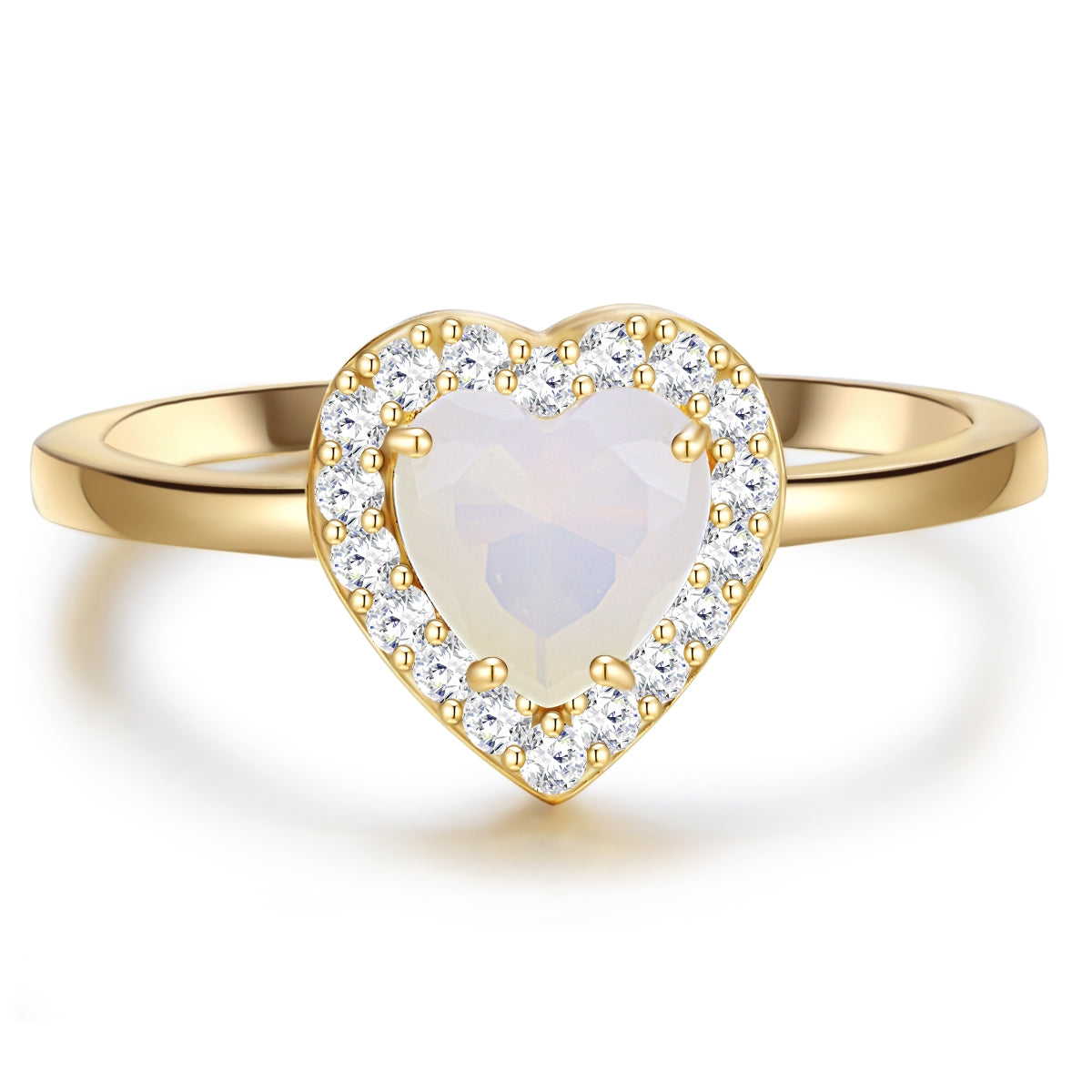 Du suchst ein romantisches und gleichzeitig glamouröses Accessoire? Dann macht dich unser Ring garantiert glücklich! Ein Herz-Symbol aus schimmerndem Mondstein wird von glitzernden Zirkonia-Kristallen eingerahmt. Die schmale, schlichte Ringschiene bildet einen perfekten Designkontrast zum üppigen Herz-Element. Der opulente Ring ist aus hochwertigem 925er Sterlingsilber gefertigt und mit zeitlosem Gelbgold beschichtet - ein Must-Have für alle Fans der klassischen Goldnuance. So mögen romantische Fashionistas Schmuck - auch ein wunderbares Geschenk, das im Nu Herzen erobert!