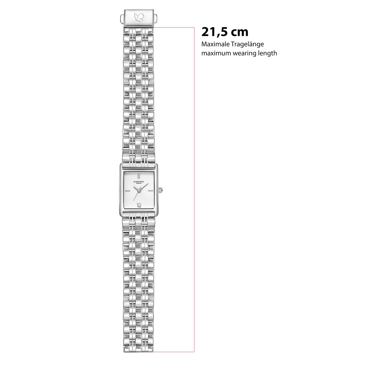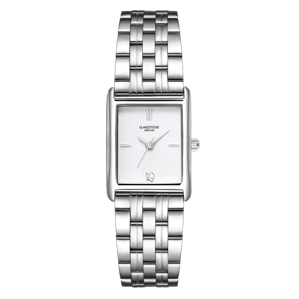 Entdecke die zeitlose Schönheit dieser eleganten Damenuhr. Das rechteckige Gehäuse in poliertem Silber verleiht deinem Look eine moderne Note. Das weiße Zifferblatt mit strukturiertem Design und klaren Strichindizes sorgt für eine stilvolle und einfache Ablesbarkeit. Die präzisen Schwert-Zeiger gleiten sanft über das Zifferblatt, angetrieben von einem zuverlässigen Quarzwerk aus Japan. Das glatte Gliederarmband aus Edelstahl in Silber bietet nicht nur Komfort, sondern auch einen sicheren Halt dank der Sicherheits-Faltschließe. Diese Uhr ist der ideale Begleiter für jeden Anlass und verleiht deinem Outfit einen Hauch von Glamour.