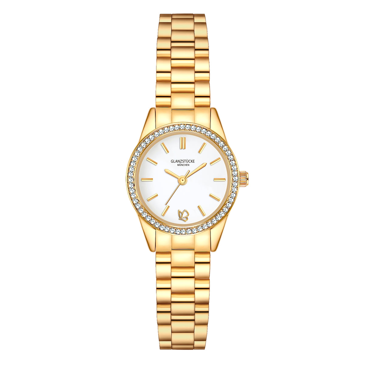 Damen Uhr Lehel weiß mit Edelstahl-Armband gold