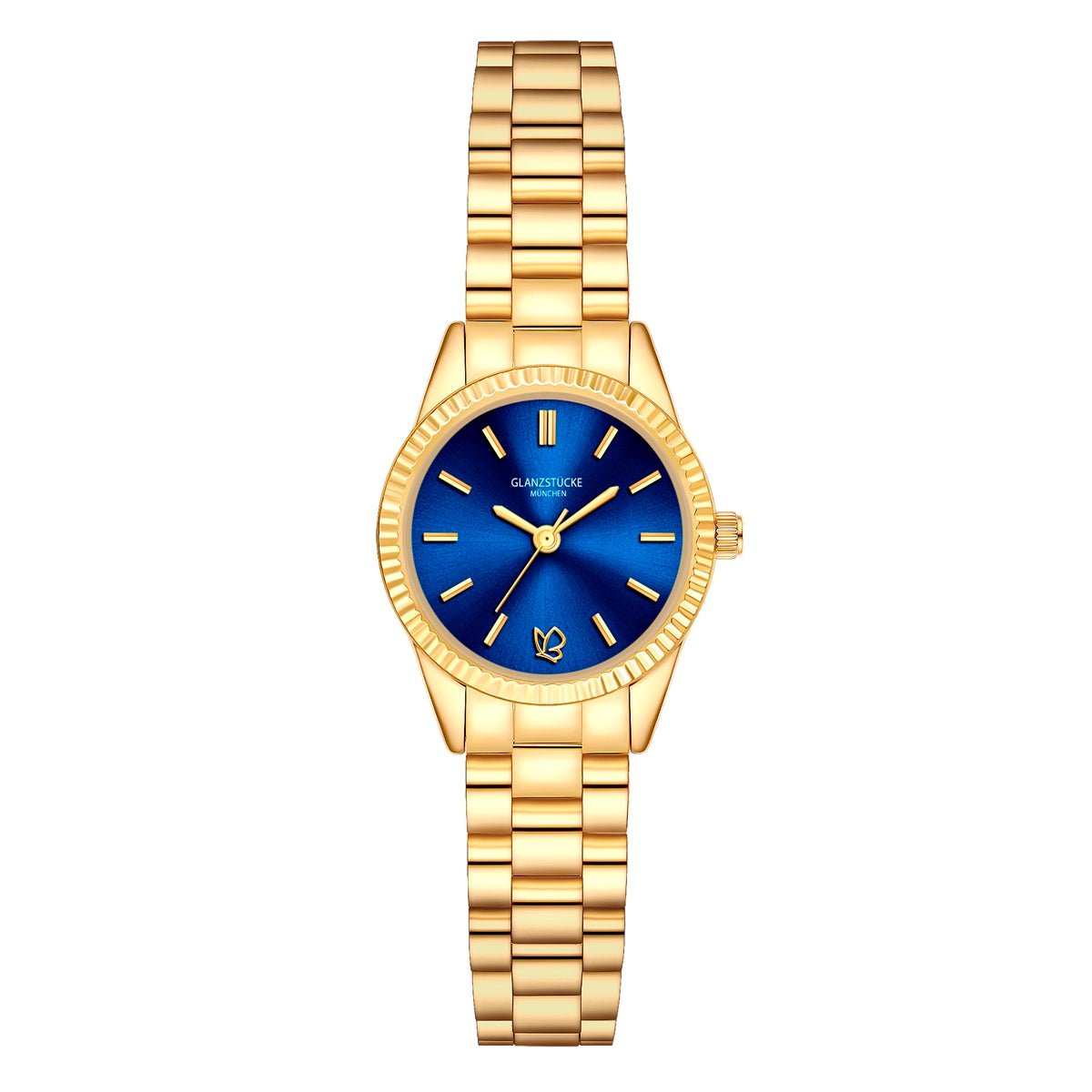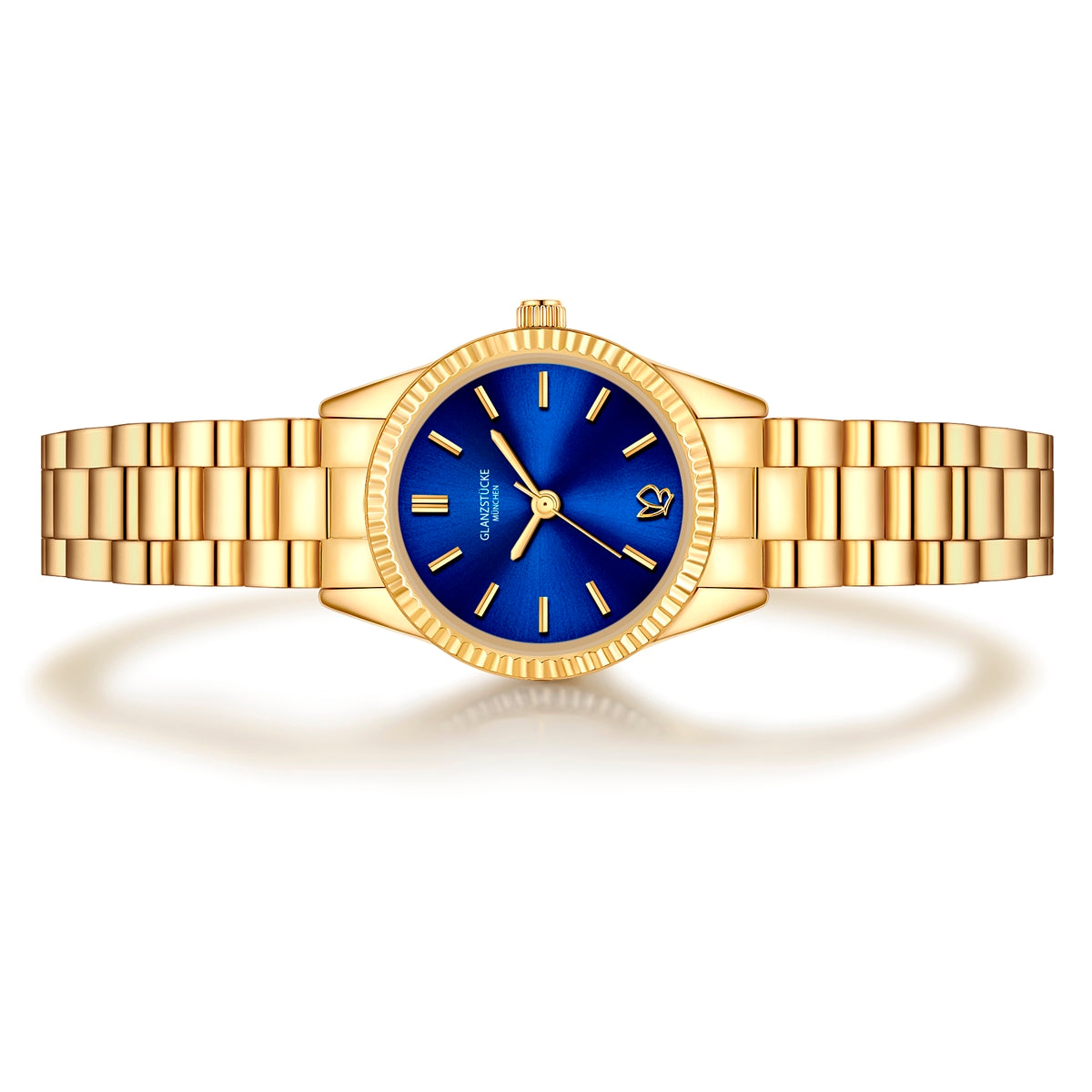 Damen Uhr Schwabing blau mit Edelstahl-Armband gold