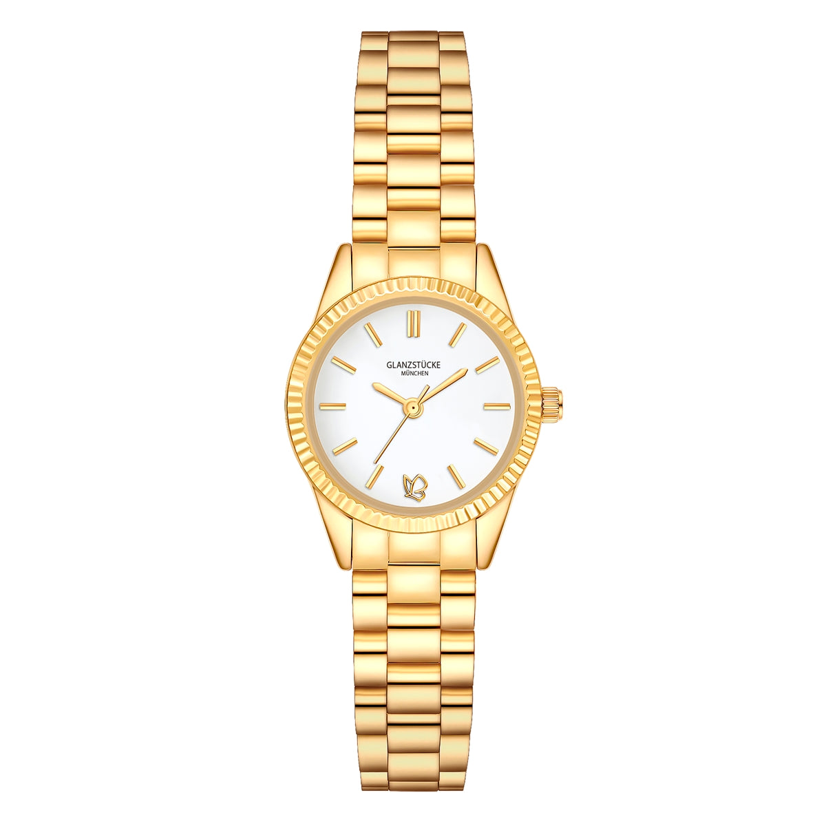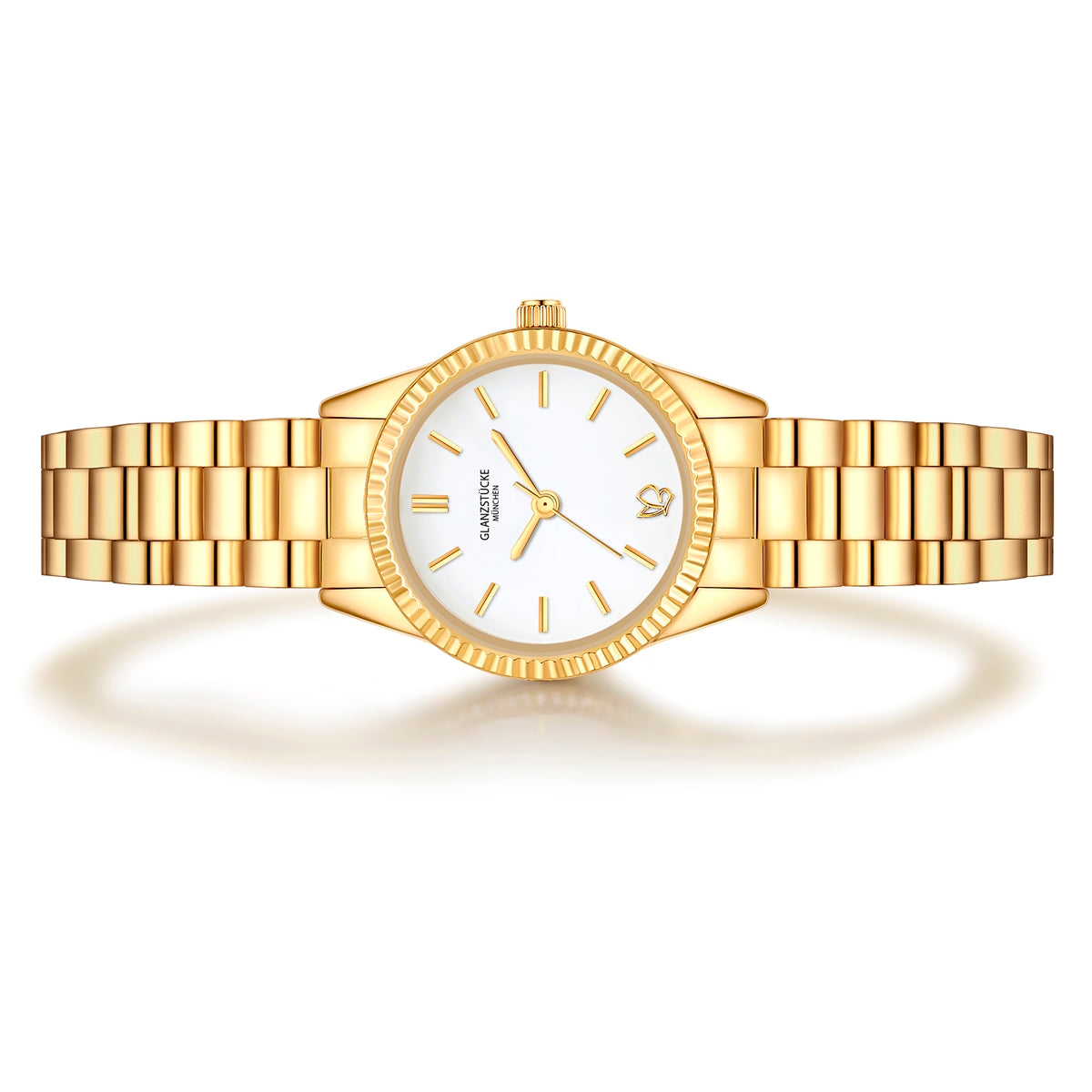 Damen Uhr Schwabing weiß mit Edelstahl-Armband gold