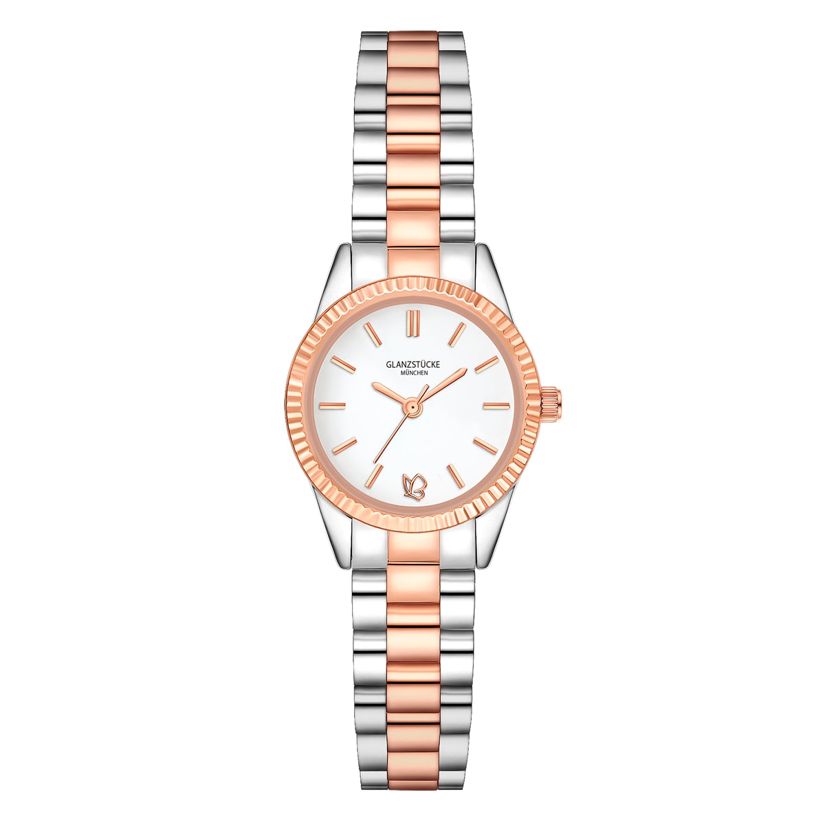 Damen Uhr Schwabing weiß mit Edelstahl-Armband silber/roségold
