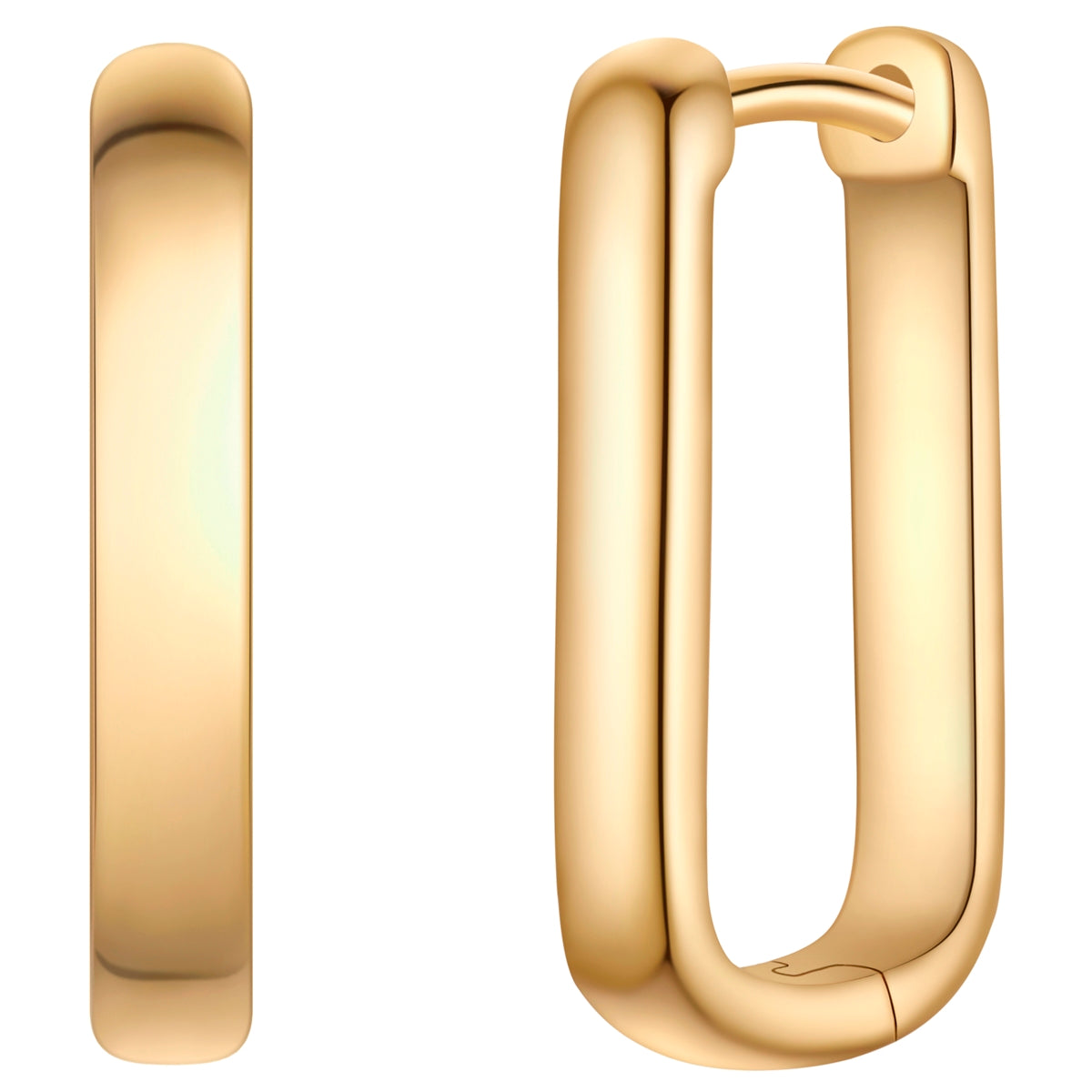 Verleihe deinem Look eine zeitlose Eleganz mit diesen rechteckigen Creolen. Die Ohrringe bestehen aus hochwertigem 925er Sterling Silber und sind mit einer gelbgoldenen Vergoldung veredelt – so erhältst du einen warmen, edlen Glanz, der jeden Style unterstreicht. Die außergewöhnliche, eckige Form verleiht den Creolen eine moderne Note und setzt stilvolle Akzente an deinem Ohr. Dank des praktischen Klappverschlusses lassen sich die Ohrringe bequem anlegen und sicher tragen. Mit einer Höhe von ca. 17,8 mm sind sie ein dezenter, aber ausdrucksstarker Begleiter für den Alltag und besondere Anlässe – perfekt, um deinem Outfit das gewisse Etwas zu verleihen.