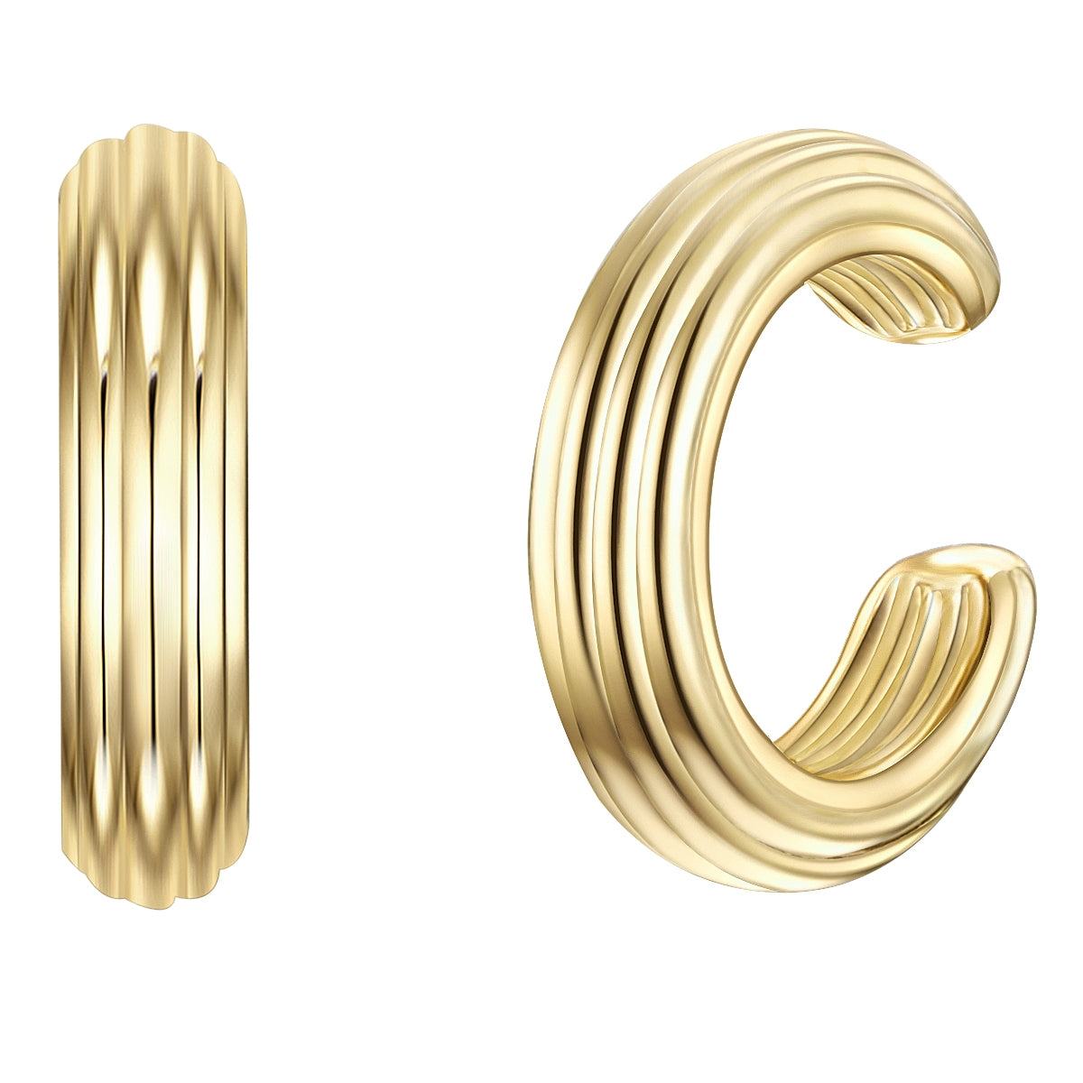 Ohrklemmen sind ein Muss für jede Fashionista und sollten deshalb auch in deiner Schmucksammlung nicht fehlen. Der große Vorteil: Du kannst die auch als Earcuffs bekannten Ohrklemmen ohne Stecker und Verschluss an der Ohrmuschel befestigen und brauchst kein (extra) Ohrloch. Du schiebst sie einfach an der gewünschten Stelle auf und fertig. Dieses Modell überzeugt durch Minimalismus: Das schlichte Band aus gelbvergoldetem Sterlingsilber nutzt als einziges Designelement eine geriffelte Oberflächenstruktur. Toll auch in Kombinination mit deinem anderen Lieblingsohrschmuck!