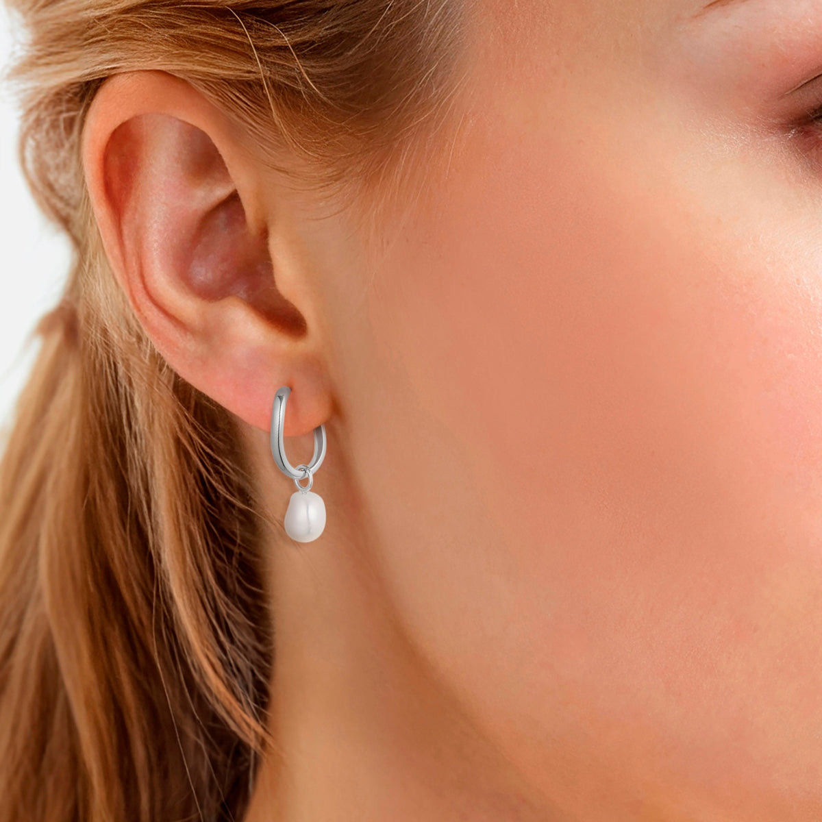 Creolen Sterling Silber Süßwasser-Zuchtperle weiß