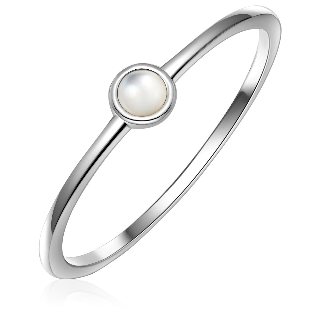 Du suchst ein stilvolles Schmuckstück, das zeitlos modern ist? Dann hat unser hübscher Ring das Zeug, dein nächstes Lieblingsstück zu werden! Der filigrane Ring begeistert mit einer zarten Ringschiene, die mit einem geheimnisvoll schimmernden Perlmutt-Solitär in einer Zargenfassung besetzt ist - ein zauberhaftes Design, das jeder Hand schmeichelt. Ringschiene und Fassung sind aus 925er Sterlingsilber gefertigt und mit einer Rhodinierung veredelt, die vor dem Anlaufen schützt. Ein vielseitiger Ring, der hervorragend zu verschiedensten Looks von Casual bis festlich kombiniert werden kann!