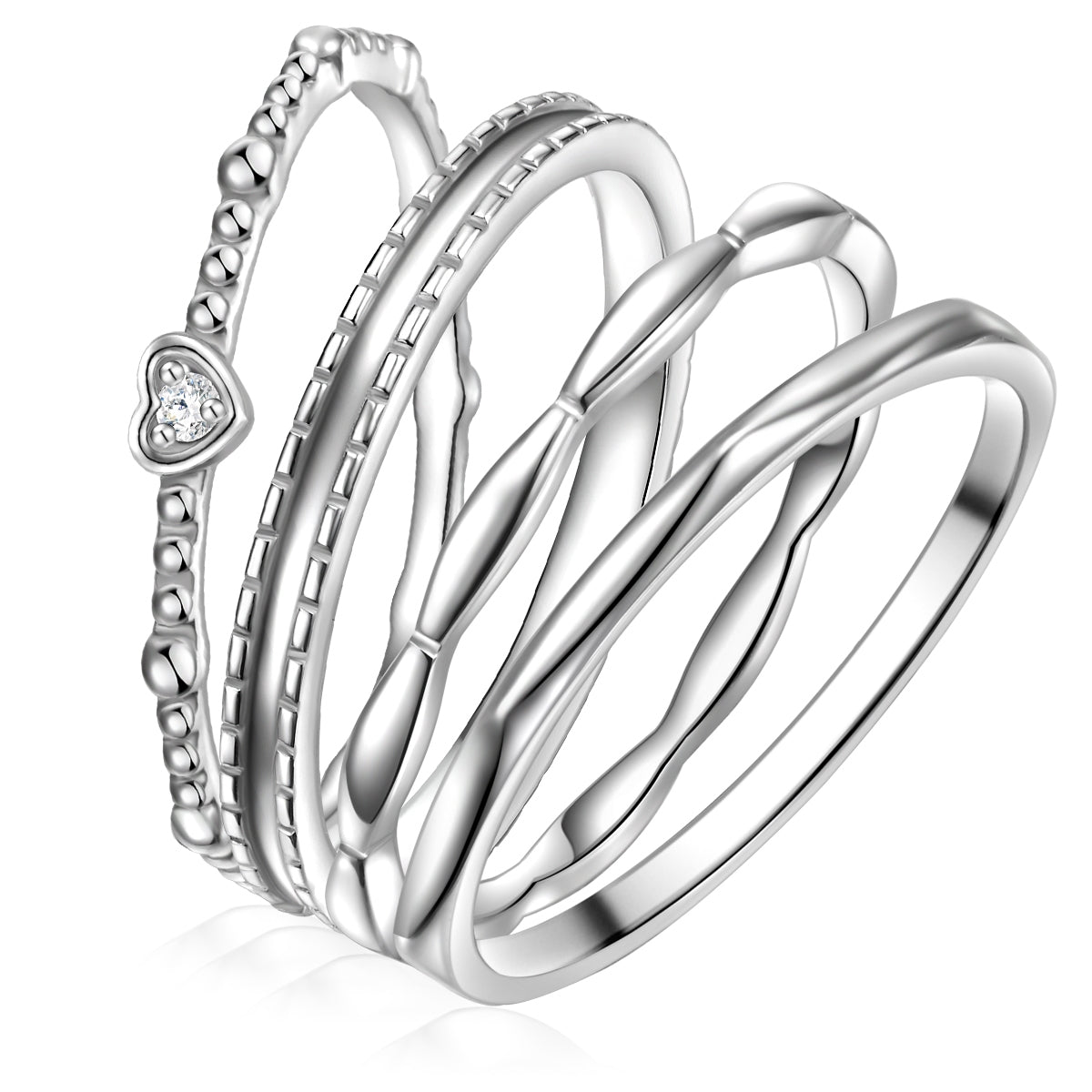 Du magst gerne besonderen Schmuck in Jugendstil-Designs? Dann wirst du dieses Ring-Set garantiert mögen! Alle vier Ringe begeistern mit außergewöhnlich gearbeiteten Ringschienen. Kantig oder feminin-verspielt, fein ziseliert oder mit romantischem Zirkonia-Herz - du hast die Wahl. Die Ringe sind aus Sterlingsilber gefertigt und mit einer Rhodiumveredelung zuverlässig vor dem Anlaufen geschützt. Der Clou: Du kannst die Ringe sowohl einzeln tragen als auch in Stapellooks kombinieren. Perfekt aufeinander abgestimmt passen sie zu vielen Looks von Casual bis festlich und sind eine Bereicherung für dein Schmuckkästchen.