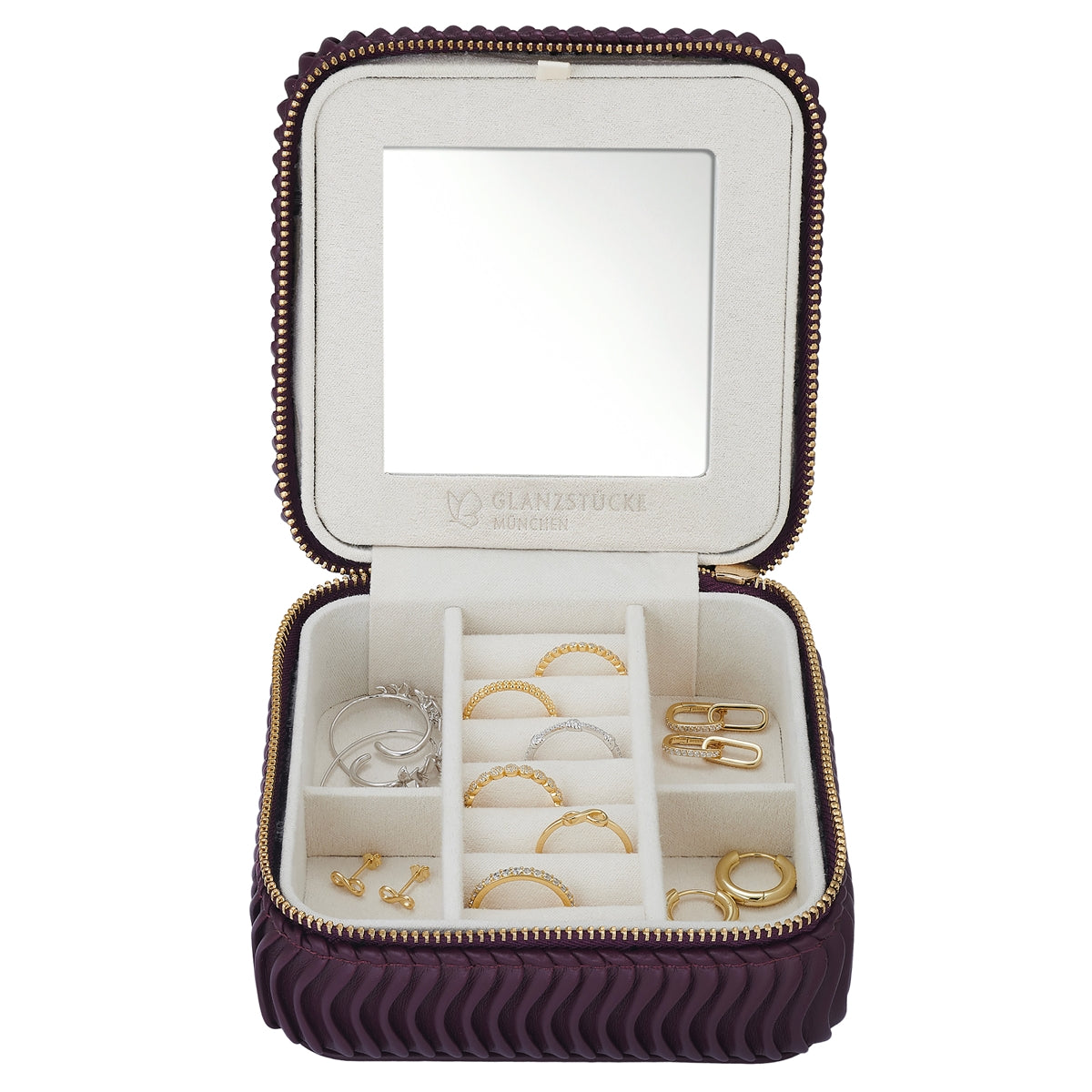 Schmuck Organizer mit Spiegel Medium bordeaux