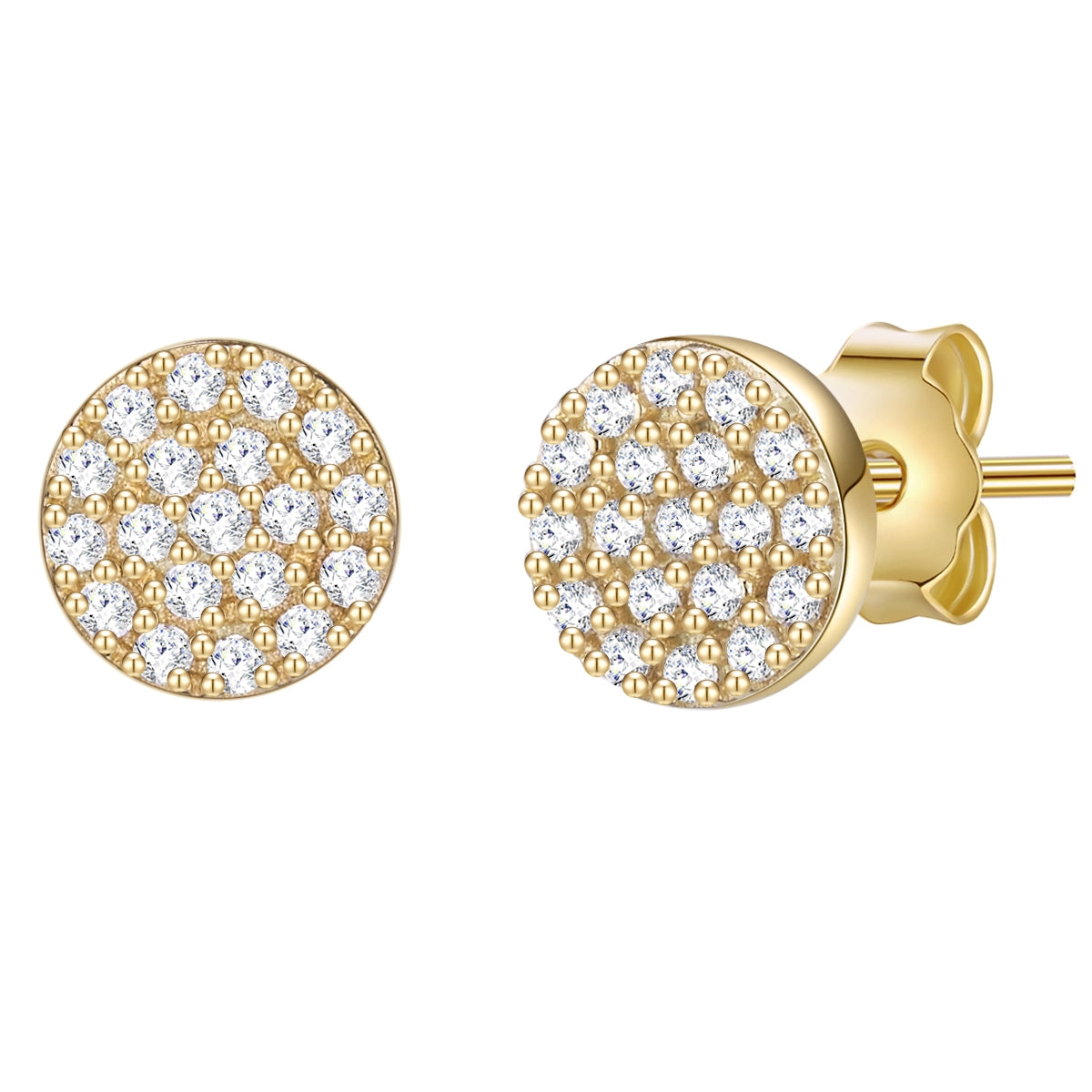 Schmuck in Geo-Looks zählt zu den angesagtesten Trends der Saison: In den Ohrsteckern wird das schlichte Kreissymbol mit einem glamourösen Kristallbesatz kombiniert - ein spannender Kontrast! Eingebettet sind die präzise facettierten Zirkoniasteine in Pavéfassungen aus gelbvergoldetem 925er Sterlingsilber. Der warme Schimmer der klassischen Goldnuance und das kühle Feuer der Kristalle vereinen sich zu einem atemberaubenden Eyecatcher am Ohrläppchen. Ein praktischer Steckverschluss sorgt für hohen Tragekomfort. Das Ergebnis ist ein Accessoire, das mit vielen Outfits harmoniert.
