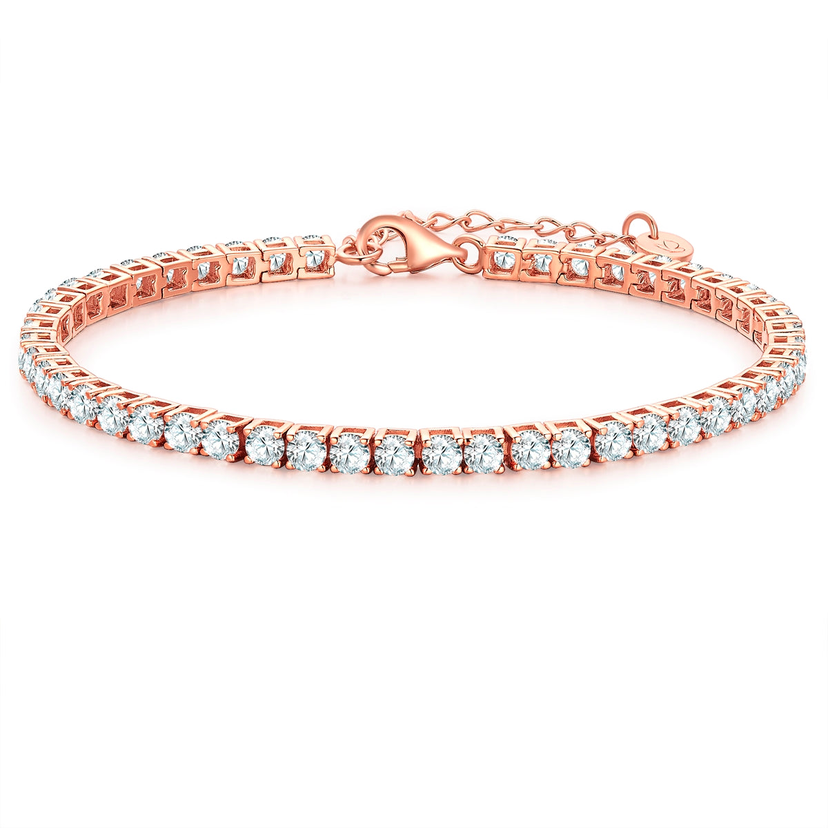 Entdecke das Tennisarmband aus der "Let's Play Tennis" Kollektion, das Eleganz und Glamour perfekt vereint. Dieses Armband aus 925er Sterling Silber ist mit einer edlen Rosévergoldung in 14 Karat veredelt und verleiht deinem Handgelenk einen warmen, luxuriösen Glanz. Die facettierten Zirkonia-Steine in strahlendem Weiß sind in einer Krappenfassung eingefasst und sorgen für ein funkelndes Highlight bei jeder Bewegung. Der praktische Karabinerverschluss und die Verlängerungskette ermöglichen es dir, die Länge individuell anzupassen. Ob als Geschenk für einen besonderen Menschen oder als stilvolles Accessoire für dich selbst, dieses Armband ist ein Ausdruck von Raffinesse und Stil!