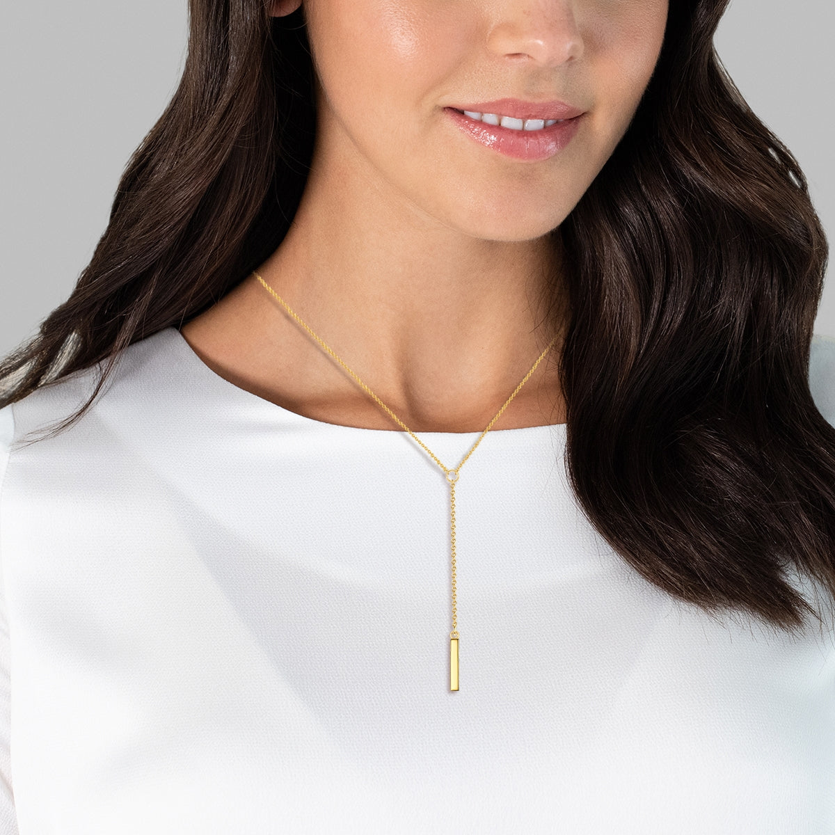 Du magst besondere Schmuckstücke? Dann wird unsere Kette dein neues Every-Day-Piece! Hingucker ist die angesagte Y-Form, an deren Ende ein filigraner Barren im kantigen Geo-Design baumelt - ein Eyecatcher im offenen Dekolleté ebenso wie auf einem schlichten Shirt oder Pullover. Die Kettenstränge der femininen Ankerkette und der kleine Barren-Anhänger sind aus 925er Sterlingsilber gefertigt und mit Gelbgold veredelt - perfekt für alle Fans der klassischen Goldnuance. Praktisches Detail: Ein Federringverschluss und ein Verlängerungskettchen ermöglichen die schnelle und unkomplizierte Längenanpassung.